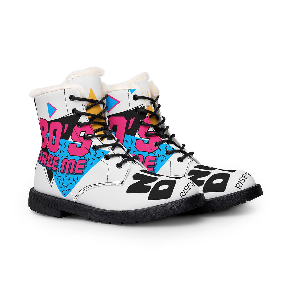 Men's Fur-Lined Leather Boots — '80s Made Me' Retro Graphic Winter Boots